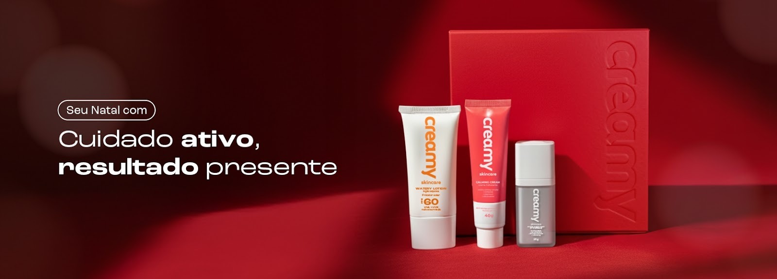 A Creamy transformou skincare em gesto de afeto, com kits exclusivos, edições limitadas e itens sensoriais como vela aromática. A campanha reforça ciência e rotina real, posicionando o autocuidado como presente significativo. A narrativa educativa e acessível aproxima a marca do público.