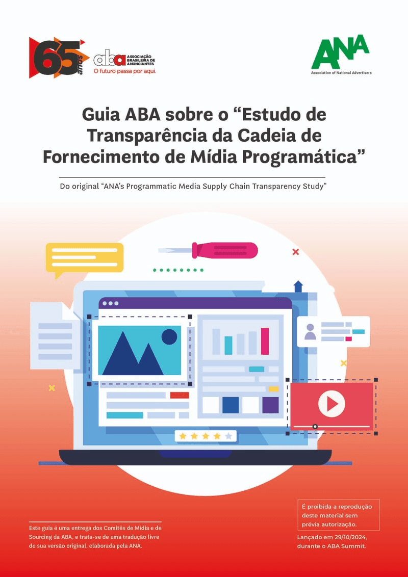 A Associação Brasileira de Anunciantes (ABA) apresentou na última quarta-feira o "Guia ABA sobre o Estudo de Transparência da Cadeia de Fornecimento de Mídia Programática". O material é uma adaptação do "Programmatic Media Supply Chain Transparency Study", desenvolvido pela Associação de Anunciantes Nacionais dos Estados Unidos (ANA), para a realidade brasileira.