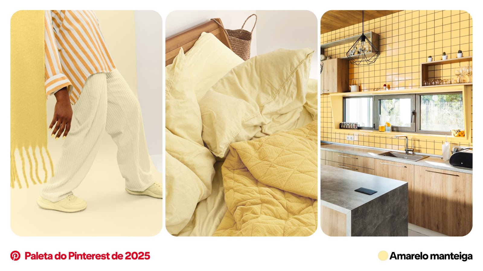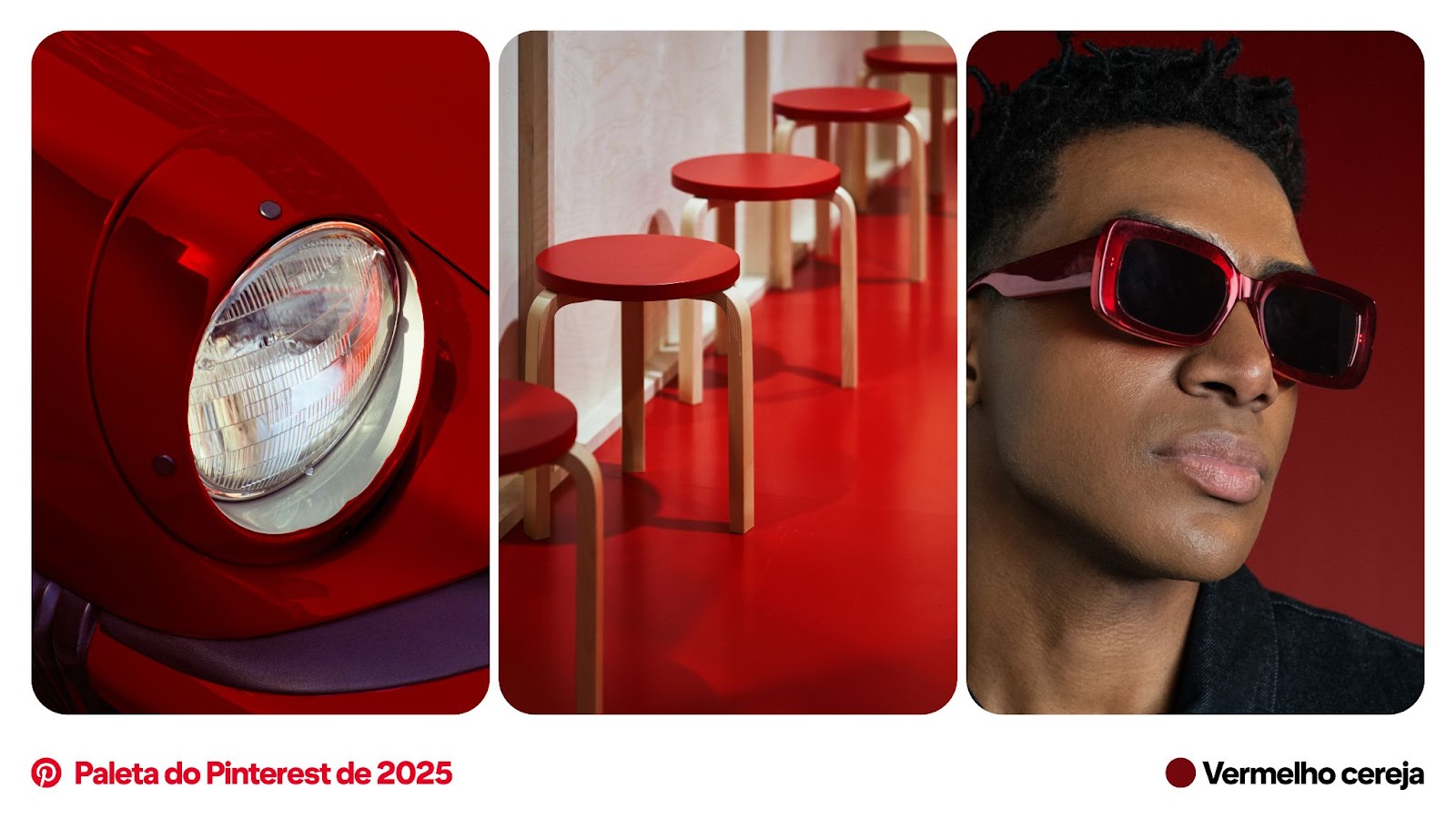 A partir dele, a equipe analisa termos de busca que refletem o que as pessoas estão explorando na plataforma, como "moda vermelho cereja" e "estética amarelo claro". Esses dados são cruzados com os padrões de engajamento, como os Pins salvos, para identificar cores que vêm conquistando destaque e gerando impacto cultural