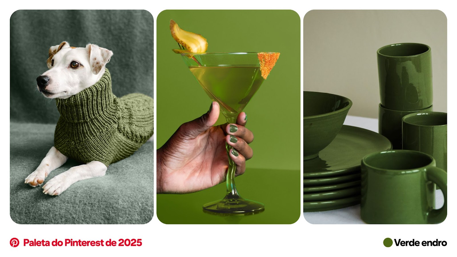 Anualmente, o Pinterest lança o Pinterest Predicts, um relatório que destaca tendências promissoras para o ano seguinte. Em 2025, a plataforma foi além e transformou essas previsões em uma paleta de cores personalizada, inspirada diretamente nas tendências emergentes, para definir os tons e matizes do ano.