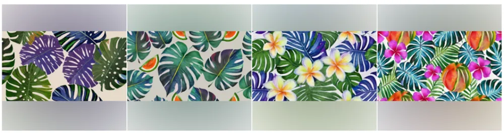 “Arte, artista, pintura em aquarela, desenho, desenhado à mão, sobreposição, pintura, folhas de palmeira tropicais, fundo de frutas e folhas tropicais, frutas e folhas exóticas, pastel, cores vibrantes, mas suaves, abstrato, padrão uniforme, botânica, floral, várias camadas, multicolorido, design repetido, elementos sobrepostos, abstrato, denso, cheio de detalhes, formas abstratas, colorido, laranja, roxo, azul, rosa, verdes, selva floral, tons de cores suaves e suaves. Excluir: Nenhum. Manter aparência: Desativado. Definições: 16:9.”