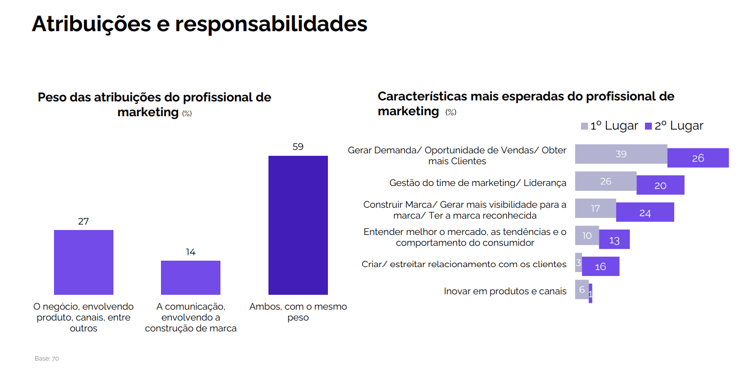 Realizada entre maio e junho com 70 profissionais em cargos de chefia — incluindo CMOs, diretores e heads — a pesquisa traça um panorama do papel atual do Marketing dentro das organizações, seus desafios, competências mais exigidas e a visão de futuro para os próximos anos.