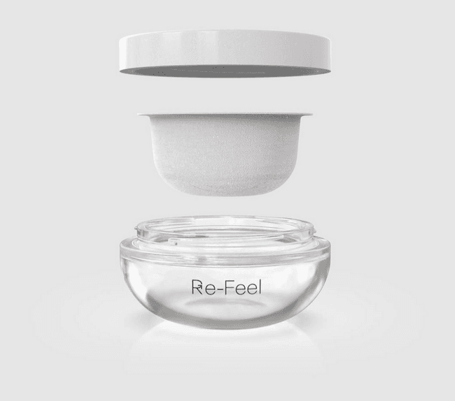 A inovação da Technicaps, feita em colaboração com outros dois fabricantes franceses, Pochet e Cilkoa, foi a vencedora deste ano do prêmio Luxe Pack em embalagens ecologicamente corretas. O “Re feel” é um refil 100% celulose, integrado em um frasco de vidro que foi ecologicamente projetado e feito na França. O item é impermeável à água e à gordura graças a um tratamento mineral exclusivo desenvolvido pela Cilkoa. Além disso, também é 100% reciclável.