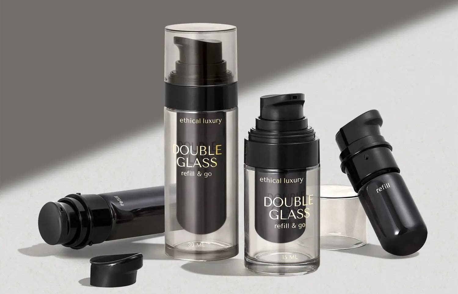 Uma nova solução recarregável para o segmento de embalagens extra premium, disponível em tamanhos de 15 e 30 ml. O design de parede dupla significa que o frasco de vidro externo pode ser reutilizado e recarregado com uma nova ampola de vidro tubular. Os clientes podem carregar apenas os frascos de recarga com suas bombas e clipes de segurança, para torná-lo mais fácil de transportar, além de os componentes da embalagem poderem ser facilmente separados e diferenciados por material.