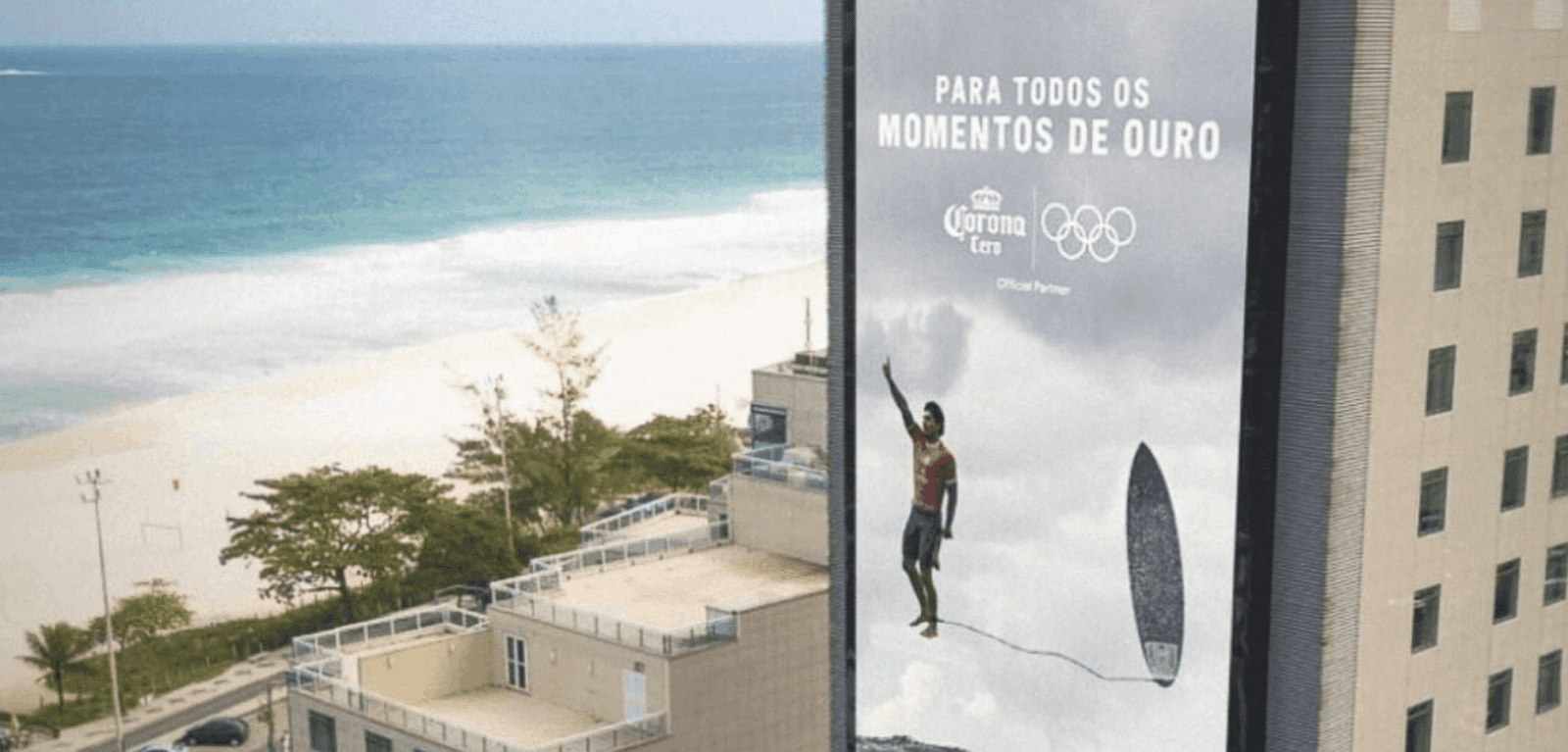 Já o fator “ao vivo” foi bem representado durante as Olimpíadas de Paris, quando a Cerveja Corona comprou os direitos da foto icônica de Gabriel Medina e, em reação rápida, lançou uma campanha com ativos de OOH próximos às praias do Rio de Janeiro.