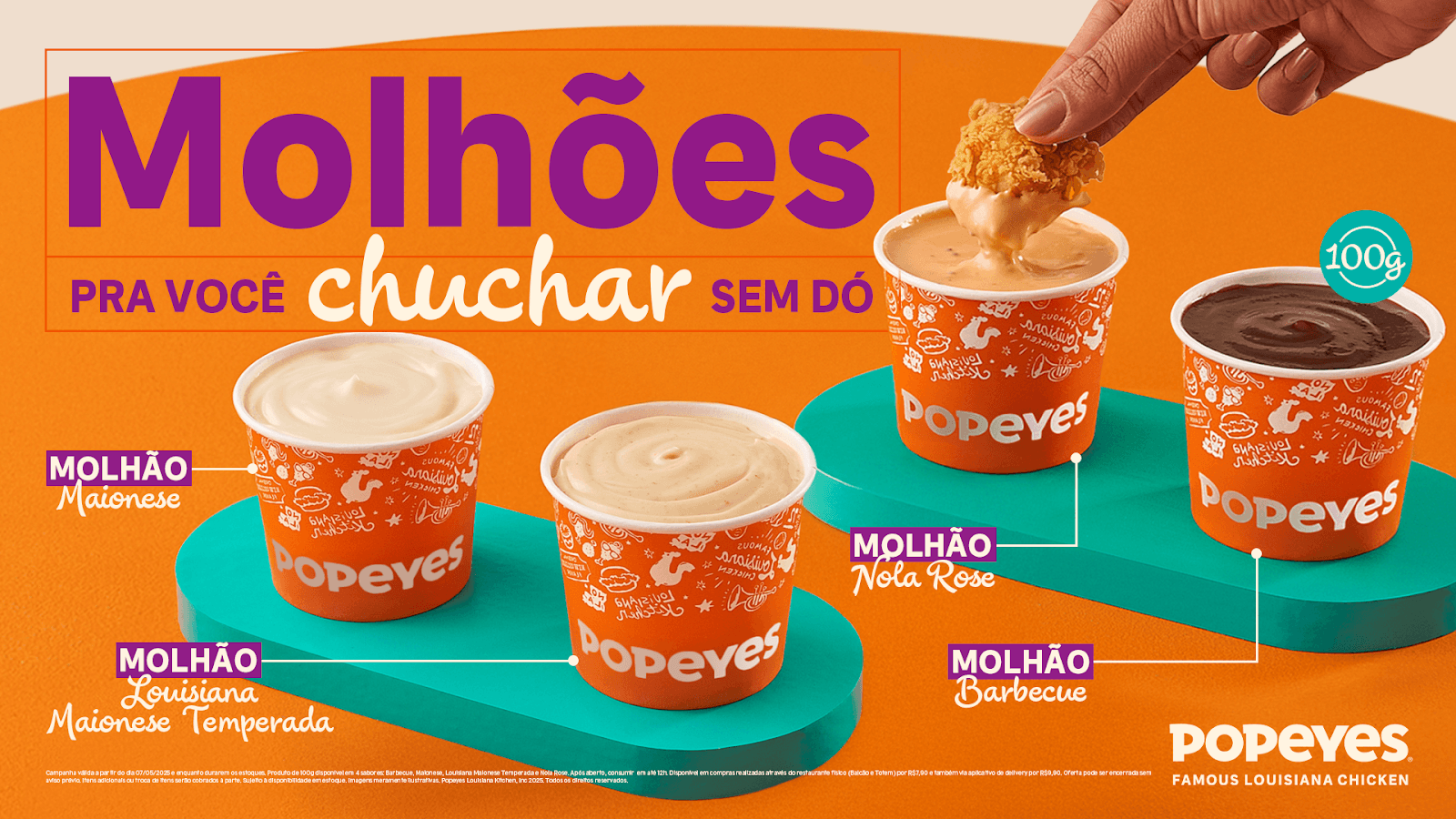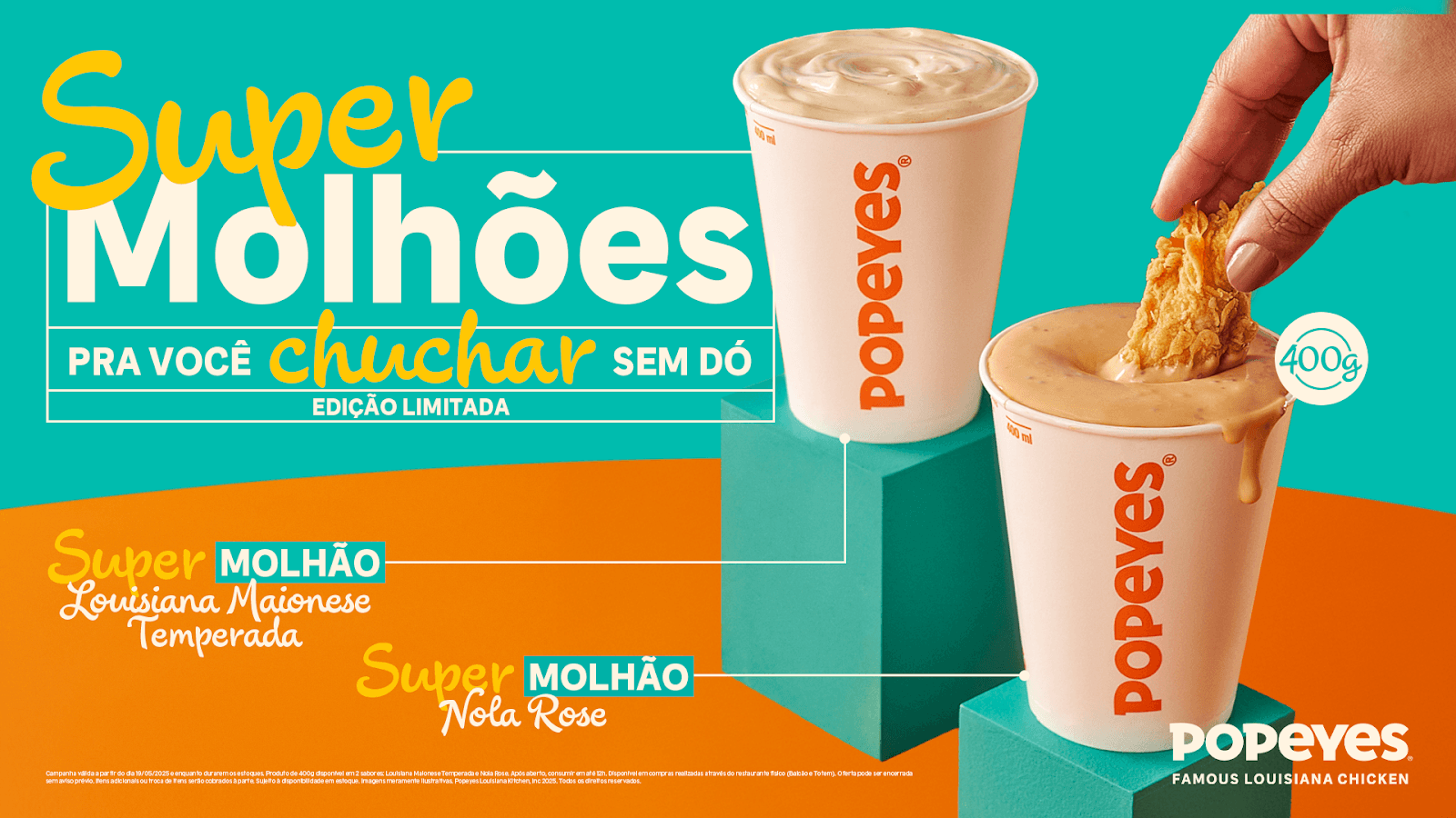 Com uma estratégia que mistura ousadia, autenticidade e forte conexão com o consumidor, Popeyes apostou nos “Super Molhões” e “Molhões” para transformar um coadjuvante clássico da refeição – o molho – em protagonista. Lançados em dois tamanhos e sabores variados, os produtos dialogam diretamente com tendências globais de indulgência, personalização e experiências sensoriais mais intensas.