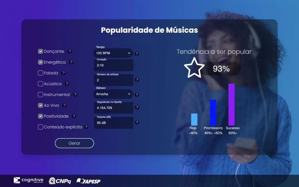Nós tivemos a oportunidade de mostrar uma ampla pesquisa de Marketing Science feita pela Núcleo de Marketing do curso de Administração da ESPM (NUMA ESPM) com apoio da Fapesp e CNPq que criou um simulador para prever se uma música fará sucesso. Esse estudo analisou o histórico de todas as canções que fizeram parte da lista das Top 200 do Spotify nos últimos 6 anos e comparou o padrão dessas músicas com outras que não chegaram na lista de sucessos usando inteligência artificial. Características da música como: ser dançante, energética, falada, instrumental, ao vivo, ter positividade e conteúdo explícito (uso de palavras impróprias) influenciam no sucesso da música, assim como variáveis numéricas como o ritmo da música em batimentos por minuto, a duração, o número de artistas e o gênero.