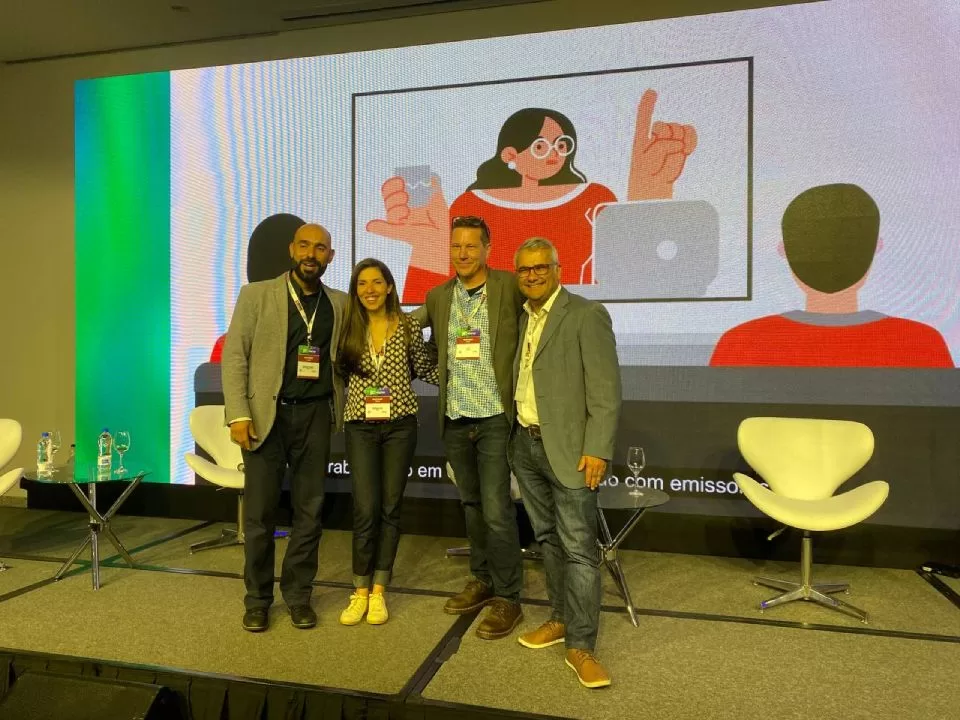 Participantes do Painel sobre IA na SET Expo: Leonardo Chaves, Bárbara Lins, Kylle Maddock e Claudio Oliveira
