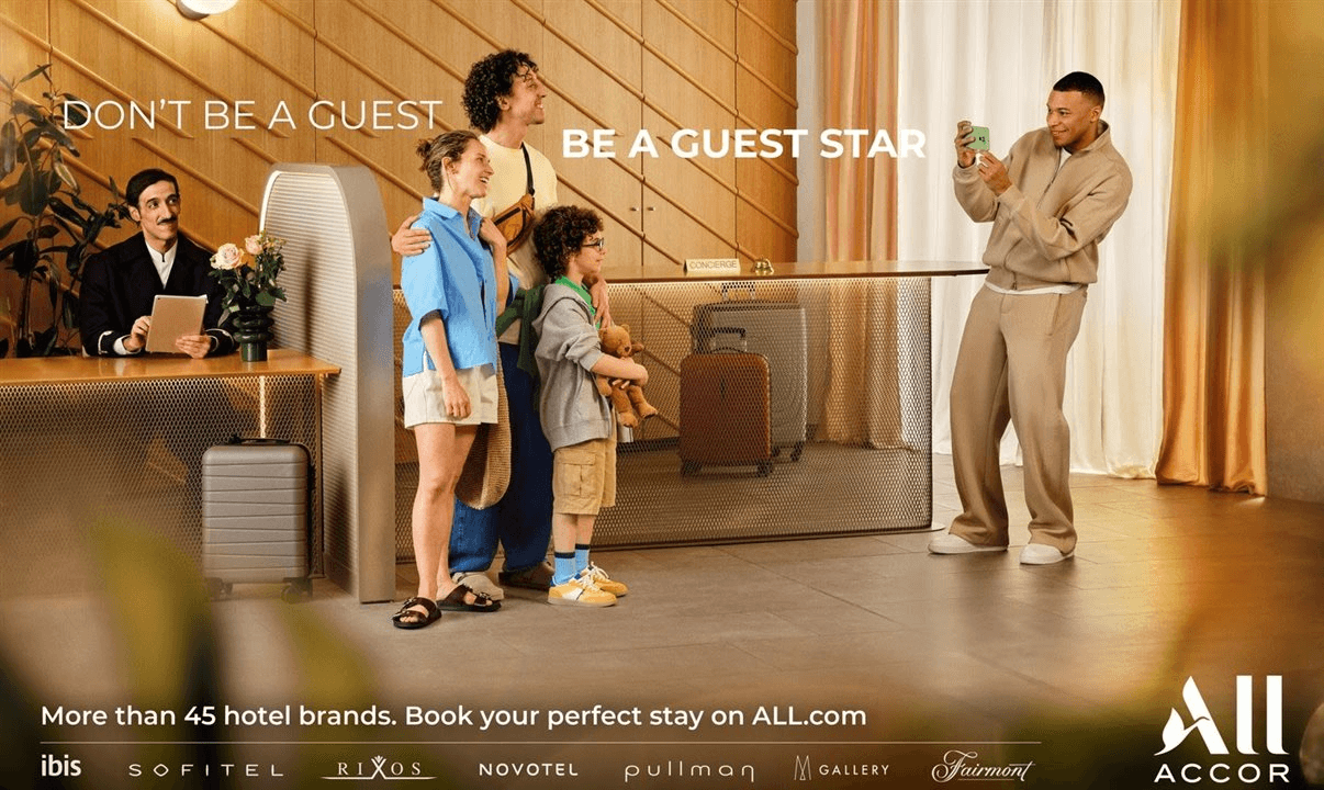 E se todo mundo fosse tratado como uma celebridade ao chegar a um hotel? Essa é a premissa da nova campanha global da Accor, que aposta no carisma de Kylian Mbappé para mostrar que, na rede, cada hóspede é tratado como estrela. A marca, que reúne hotéis como Sofitel, Fairmont, ibis e Novotel, coloca seu programa de reservas e fidelidade, o ALL Accor, no centro dessa proposta: mais do que acomodar, a ideia é surpreender.