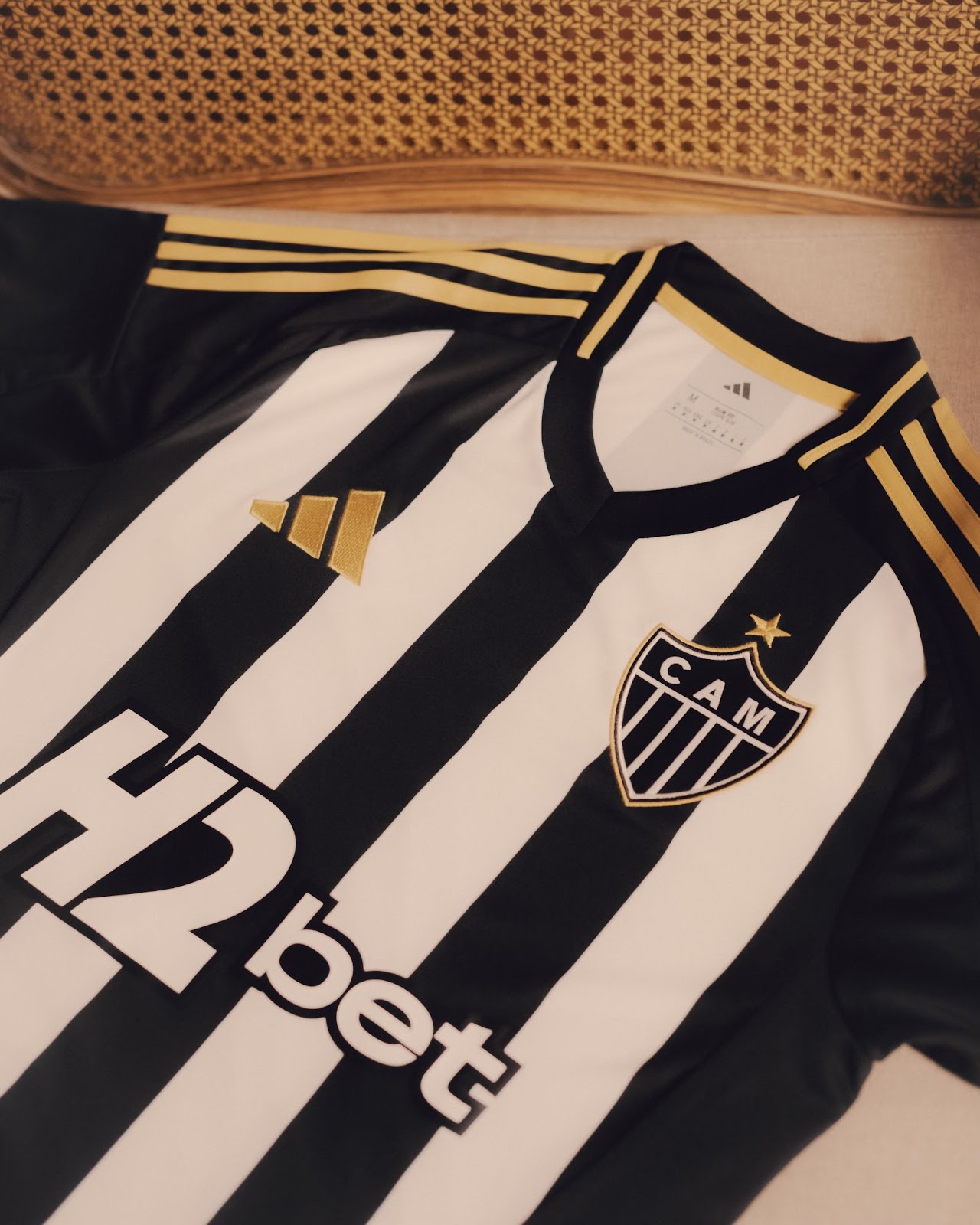 Os detalhes dourados do uniforme, inspirados nos primeiros raios de sol, remetem ao brilho do amanhecer e representam a determinação e o orgulho pela história e conquistas do Galo. A composição combina performance com elementos que resgatam a tradição alvinegra, criando um manto que traduz a história do clube.