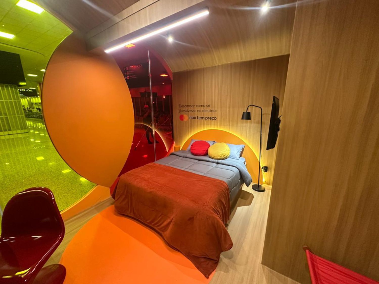 Outra frente que ganha força nos aeroportos é a criação de experiências exclusivas durante o tempo de espera. No Aeroporto Internacional Tom Jobim, no Rio de Janeiro, a Mastercard instalou uma cápsula privativa de descanso no embarque internacional, oferecendo gratuitamente um espaço completo para relaxamento ou produtividade antes do voo. Com reserva online e funcionamento por tempo limitado, a ativação reforça o posicionamento da marca ao transformar um momento ocioso da viagem em uma experiência memorável.