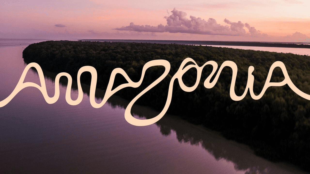 O principal elemento da identidade visual é a tipografia construída a partir do próprio território amazônico. A equipe criativa analisou imagens de satélite do Rio Amazonas e de seus afluentes, identificando formas naturais que correspondiam às letras da palavra Amazônia, criando uma tipografia orgânica diretamente vinculada à geografia da região.