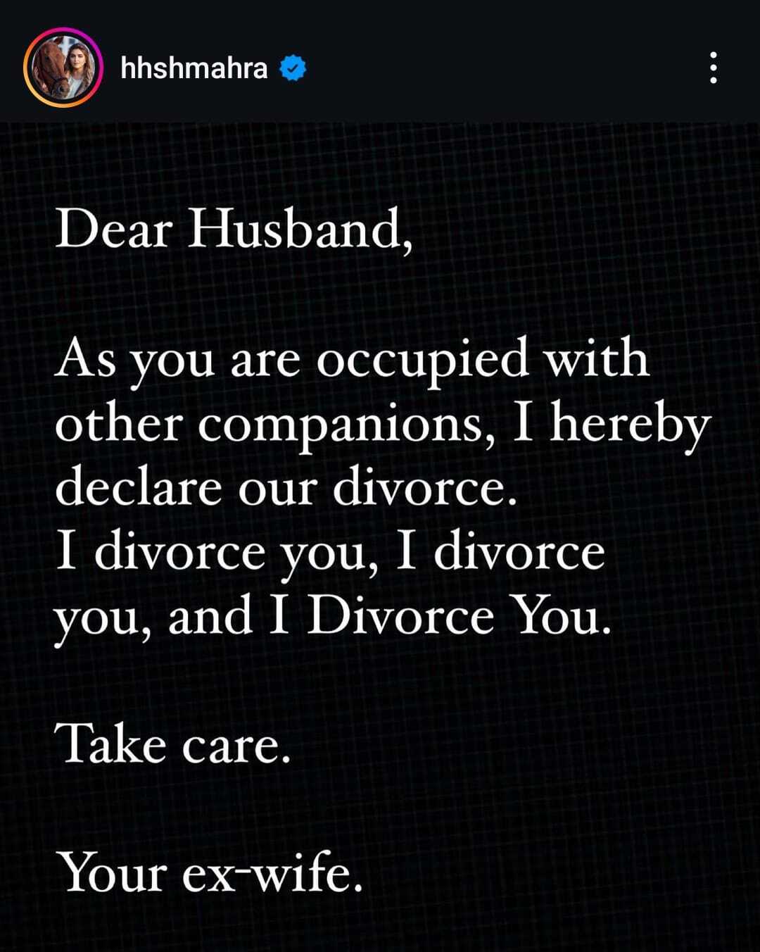 Em meados de julho, um pedido de divórcio pelas redes sociais viralizou. Uma dos 26 filhos do emir de Dubai e primeiro-ministro dos Emirados Árabes Unidos, Mohammed bin Rashid Al Maktoum, a princesa Sheikha Mahra bint Mohammed bin Rashid Al Maktoum anunciou a separação pelo Instagram.