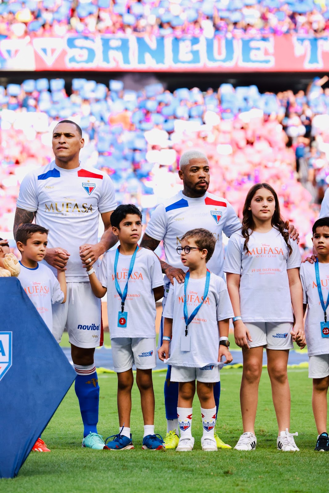 As crianças que acompanharam os atletas também participaram da ação, utilizando uniformes personalizados e segurando pelúcias inspiradas na obra, assim como os mascotes do clube. A torcida ergueu dois bandeirões de “Mufasa: O Rei Leão”, complementando as placas de publicidade espalhadas pela arena. Um spot exclusivo do filme foi exibido nos telões durante o jogo.