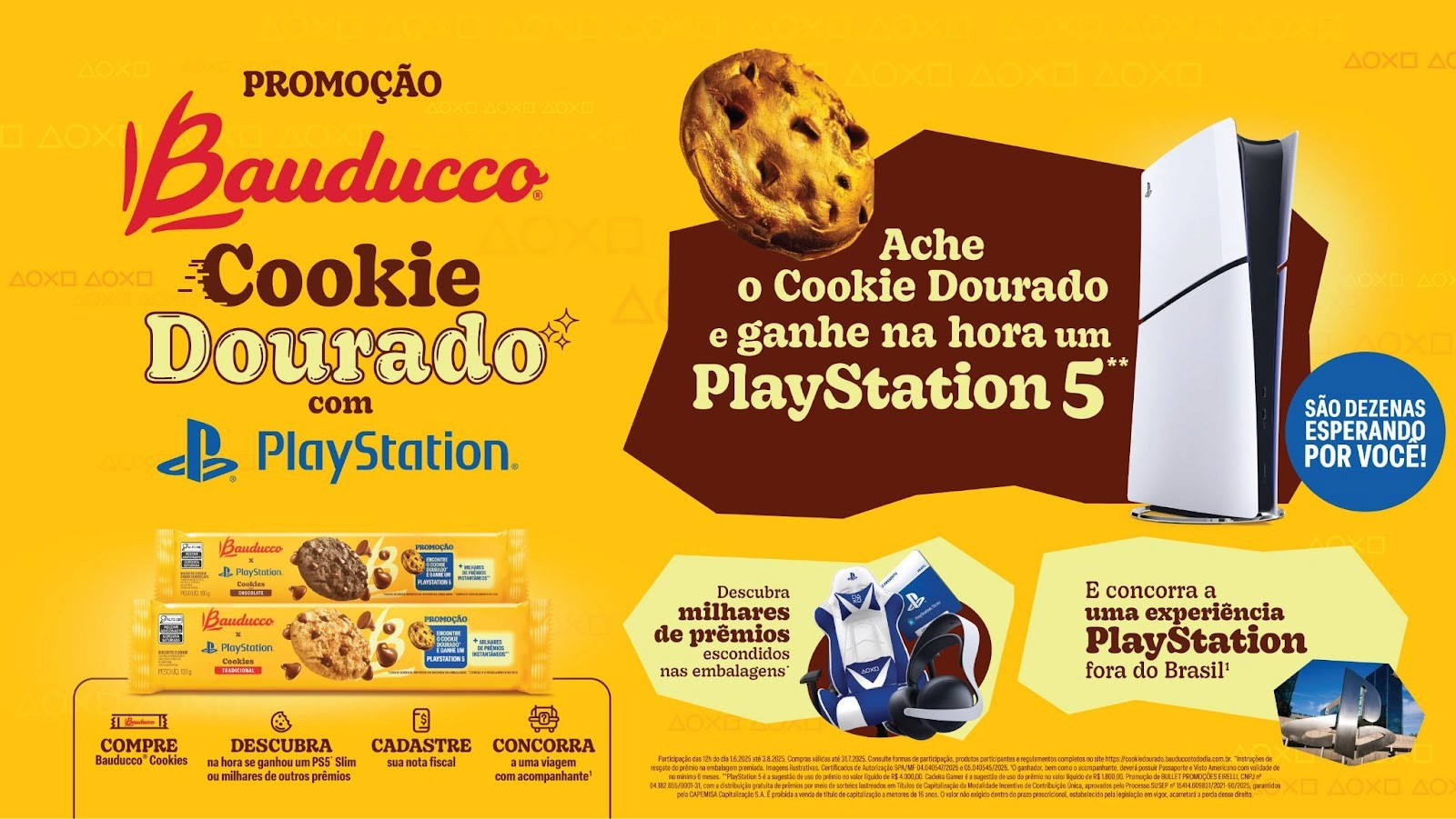A ação se baseia em uma mecânica simples e lúdica: na compra de qualquer Bauducco Cookie, o consumidor poderá encontrar um “cookie dourado” dentro da embalagem, um voucher premiado que pode conceder prêmios instantâneos como o console PlayStation 5, cartões-presente, fones de ouvido e cadeiras gamers.