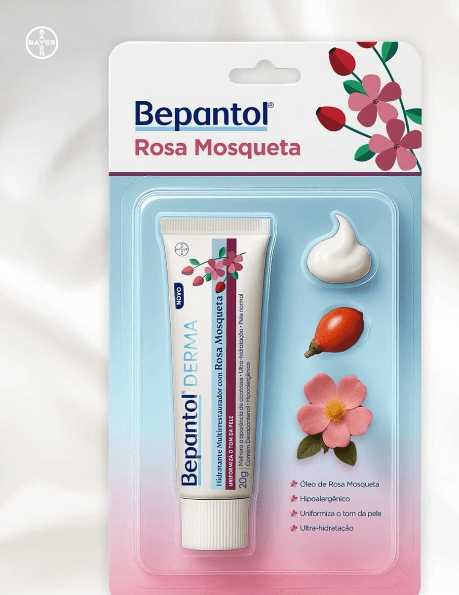 O resultado é o novo Bepantol Derma Rosa Mosqueta. A fórmula une dois ativos já reconhecidos na dermatologia: o óleo de rosa mosqueta, conhecido pelas propriedades antioxidantes e clareadoras, e o dexpantenol, ingrediente tradicional da linha Bepantol, com ação profunda na hidratação e regeneração da pele. Desenvolvido para atender às necessidades específicas das brasileiras, o produto busca oferecer um skincare descomplicado e eficiente.