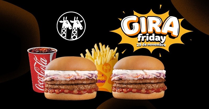 O Giraffas preparou uma promoção especial para a Black Friday deste ano. No dia 29 de novembro, última sexta-feira do mês, os clientes que comprarem o combo Burger Americano Duplo nas lojas físicas ganharão outro sanduíche igual.