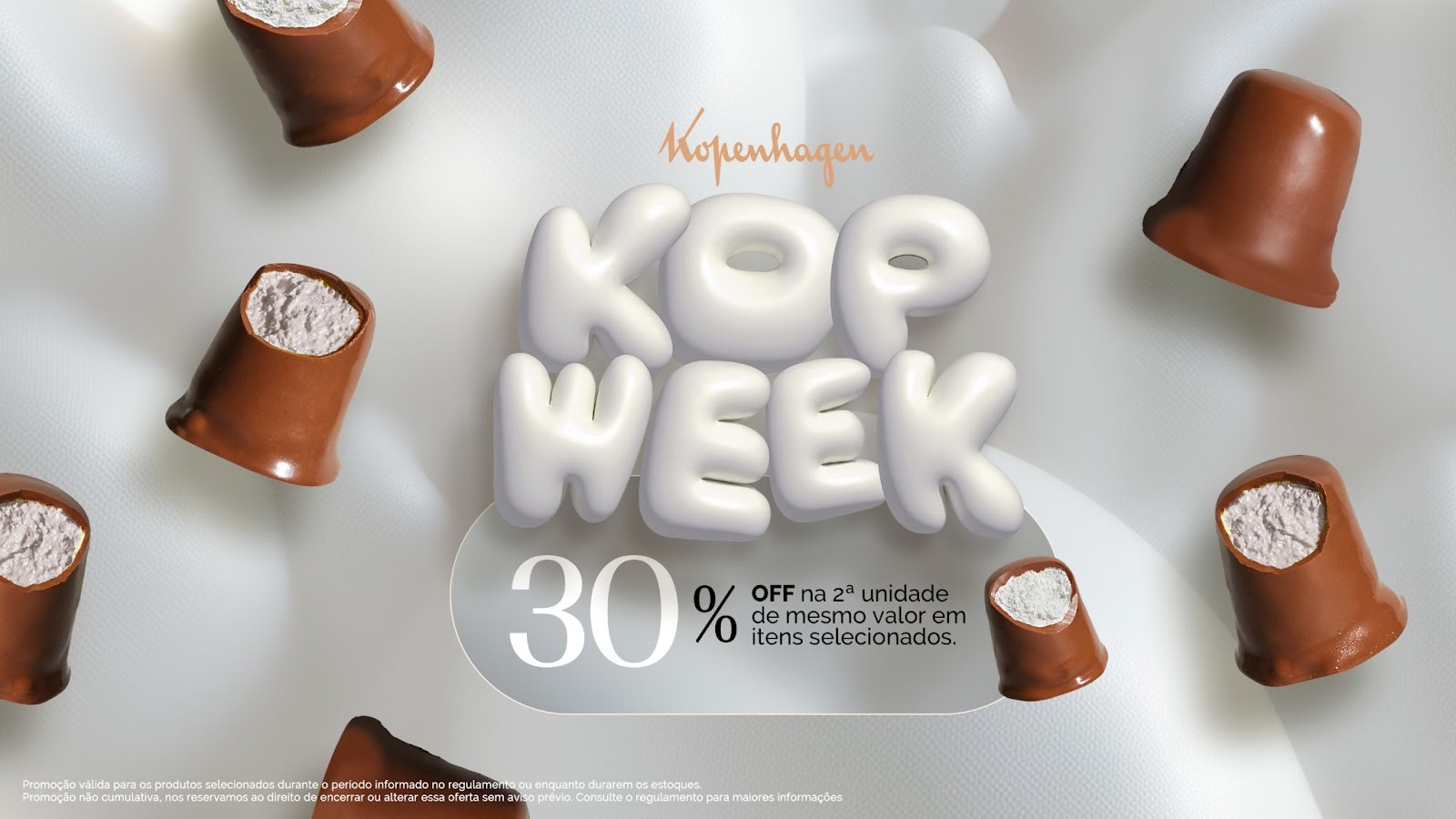 A Kopenhagen lançou a Kop Week, assinada pela Agência GINGA. Com o conceito "Descontos Que Marcam Momentos", a comunicação destaca o desconto exclusivo de 30% na segunda unidade de um dos chocolates mais conhecidos da marca: a Nhá Benta.