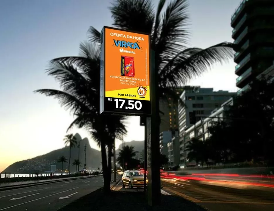 Um bom exemplo disso é a campanha “Oferta da Hora”, do Supermercado Mundial, lançada na zona sul do Rio de Janeiro. Utilizando relógios digitais espalhados pelas vias da região, a empresa vai utilizar os horários exibidos pelos dispositivos para anunciar preços especiais de alguns de seus produtos.