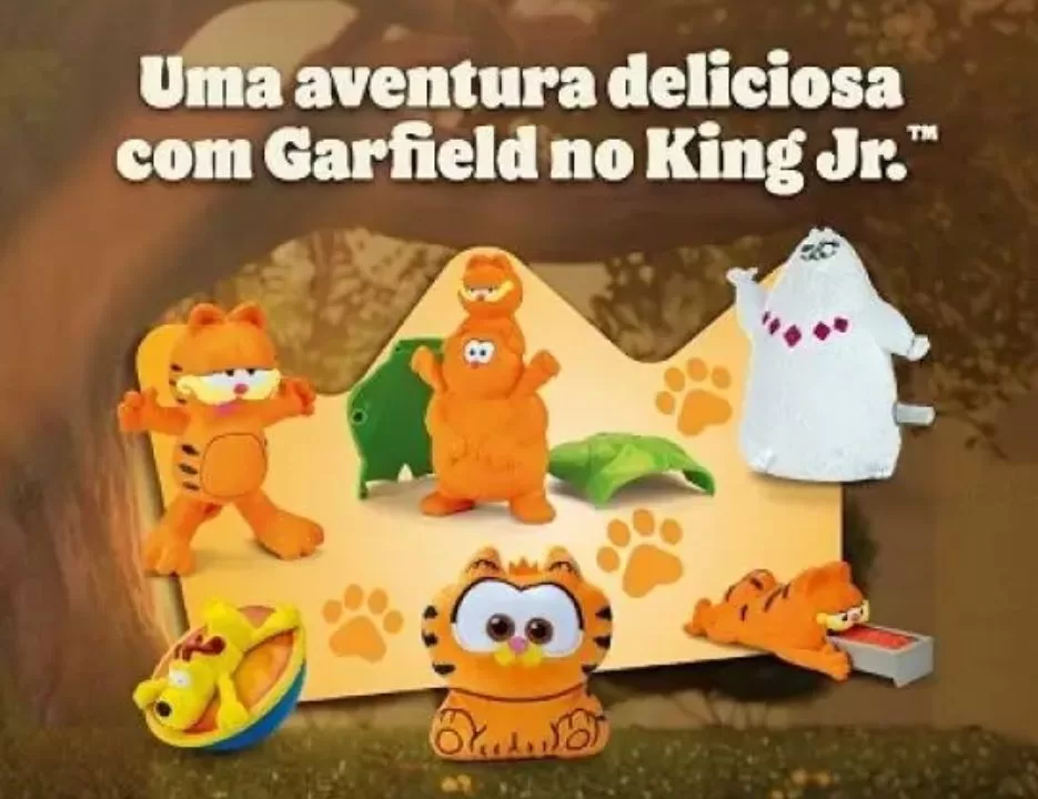 Os personagens do filme “Garfield: Fora de Casa” chegaram hoje aos restaurantes do Burger King. Representados em miniaturas, eles fazem parte de uma linha de seis brinquedos colecionáveis, obtidos através da compra do Combo King Jr. nos canais de venda do BK.
