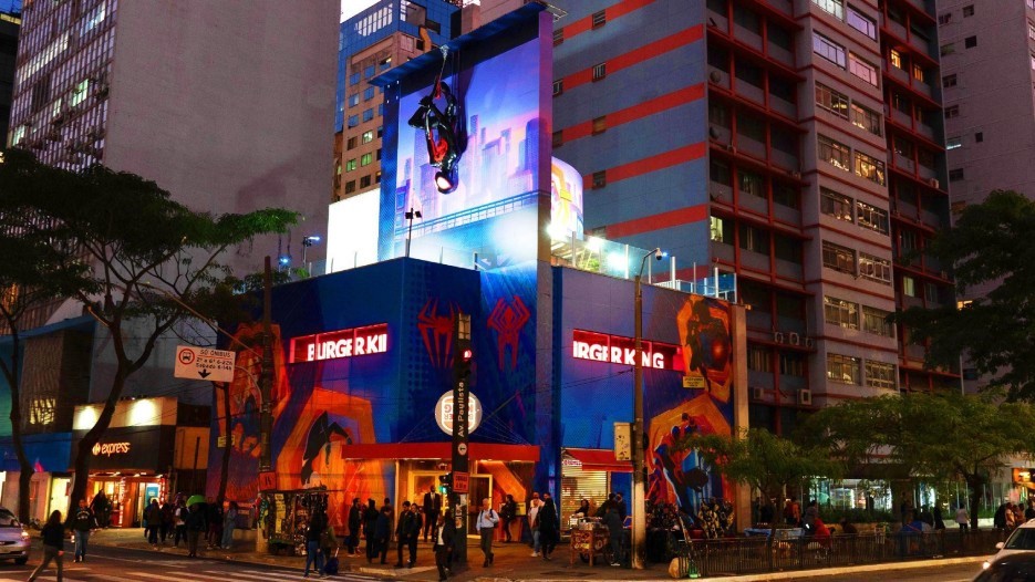 O Burger King criou uma campanha de experiência imersiva na avenida mais famosa de São Paulo. O restaurante do cruzamento da Av. Paulista com a Av. Brigadeiro Luís Antônio está totalmente transformado no universo do novo filme do Homem-Aranha: Através do Aranhaverso.