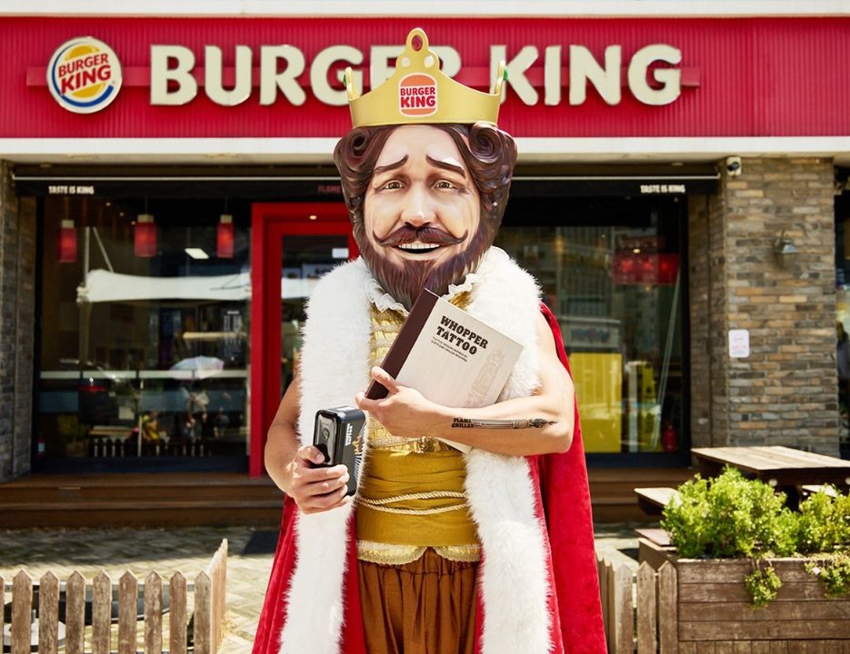 Batizada de 'Whopper Tattoo', a campanha sazonal aconteceu nos meses de julho e agosto como parte do projeto 'Flame-Grilled Taste', que celebrou o 40º aniversário da entrada do Burger King no país asiático. Durante a execução, o Tattoo King, mascote selecionado para a ação, caminhou por ruas de cidades como Busan e Seul em busca de participantes.