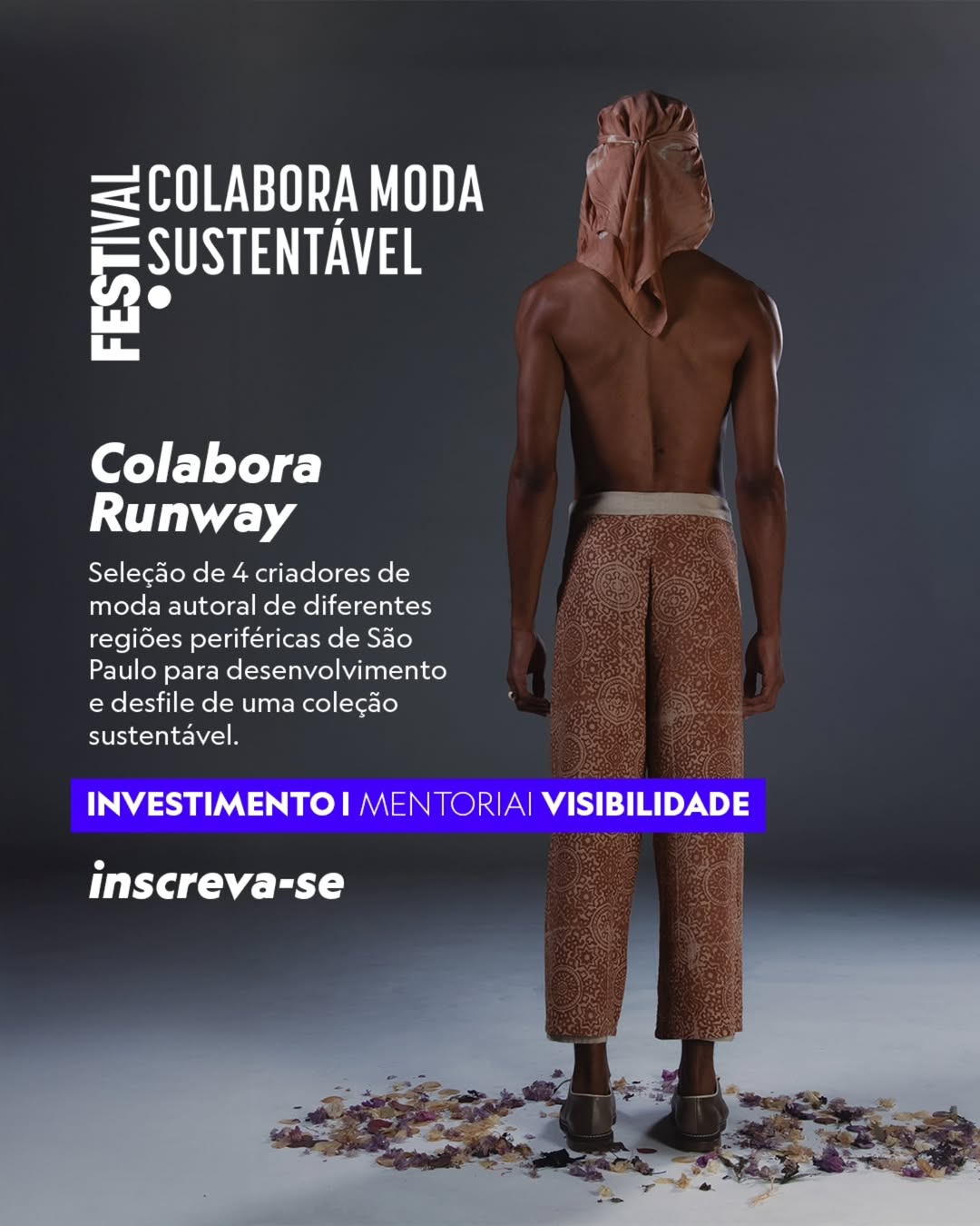 As coleções serão apresentadas nas sessões do “Esquenta Colabora”, que acontecerão em quatro regiões periféricas da cidade. Cada estilista selecionado receberá um investimento de R$ 5 mil para o desenvolvimento das peças, e um deles será escolhido para exibir o resultado no festival, em julho.