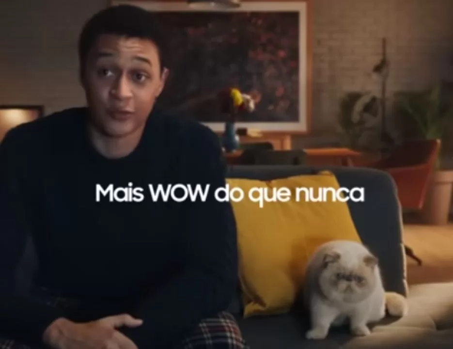 Nela, um gato impressiona seu dono ao falar “uau” ao ver a nova TV Samsung. Isso é seguido pela frustração do homem em não conseguir fazer com que o pet diga a palavra novamente, até que o gato esteja em frente à TV novamente.