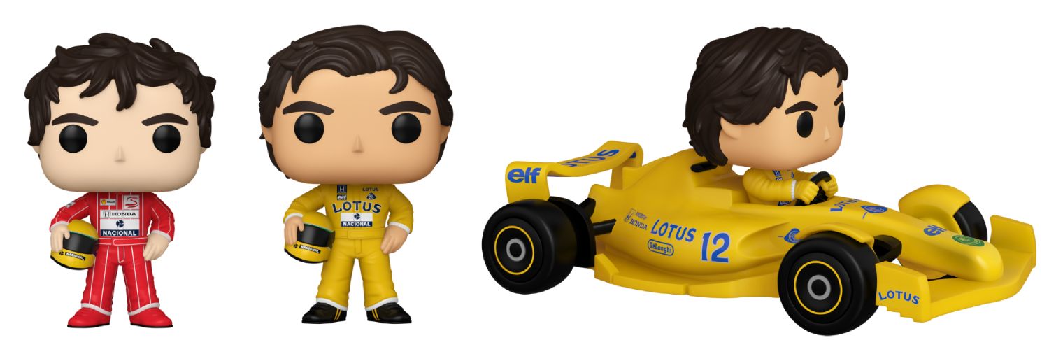 Serão três versões exclusivas: dois deles representam suas passagens marcantes pela Lotus e McLaren, com seus macacões emblemáticos e o capacete icônico. O terceiro modelo, conhecido como Funko Rides, apresenta uma réplica rica em detalhes do carro amarelo que Senna pilotou enquanto corria pela Lotus na temporada de 1987.