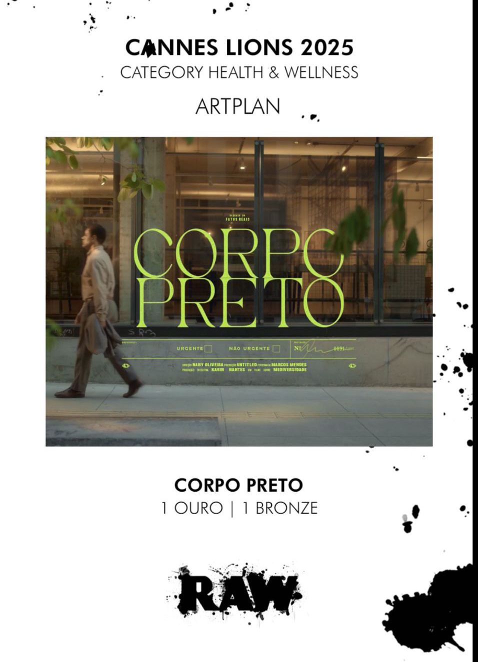 "Corpo Preto" foi dirigido por Nany Oliveira, da Untitled, e trata do racismo estrutural na medicina, acompanhando um homem negro na sua busca pelo diagnóstico correto. Este é o primeiro trabalho solo da carreira da Nany. Segundo ela, estes prêmios não só destacam a força da publicidade brasileira no cenário global, mas também reforçam a importância de temas sociais e de diversidade na narrativa publicitária.