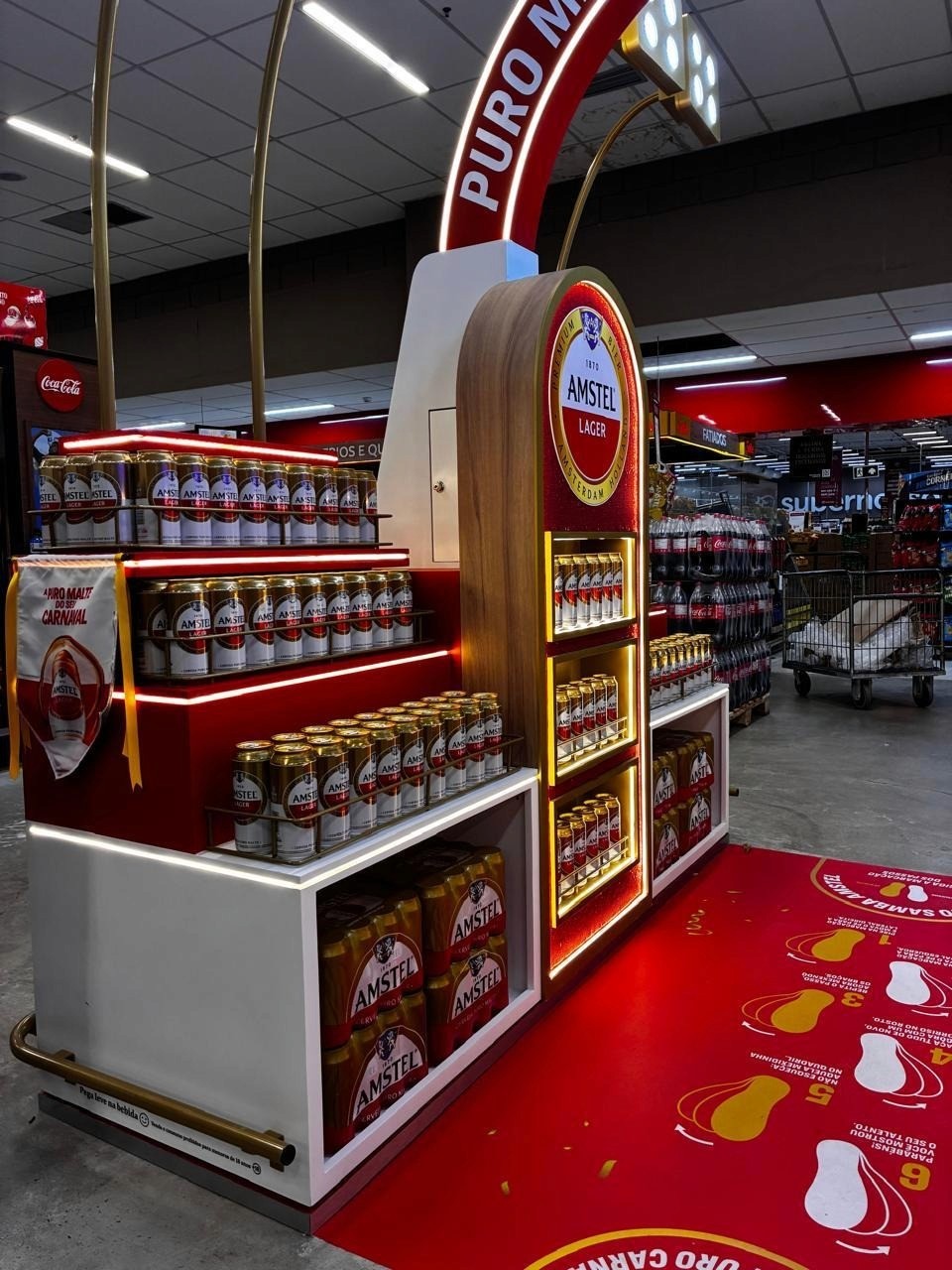 A Amstel apostou em uma plataforma integrada que transforma supermercados, bares e restaurantes em ambientes imersivos de Carnaval. Com ilhas cenográficas, rotas interativas e QGs urbanos, a marca construiu uma jornada que começa na compra e se estende até o brinde. A estratégia reforça a importância do trade marketing como vetor de experiência, engajamento e conversão.