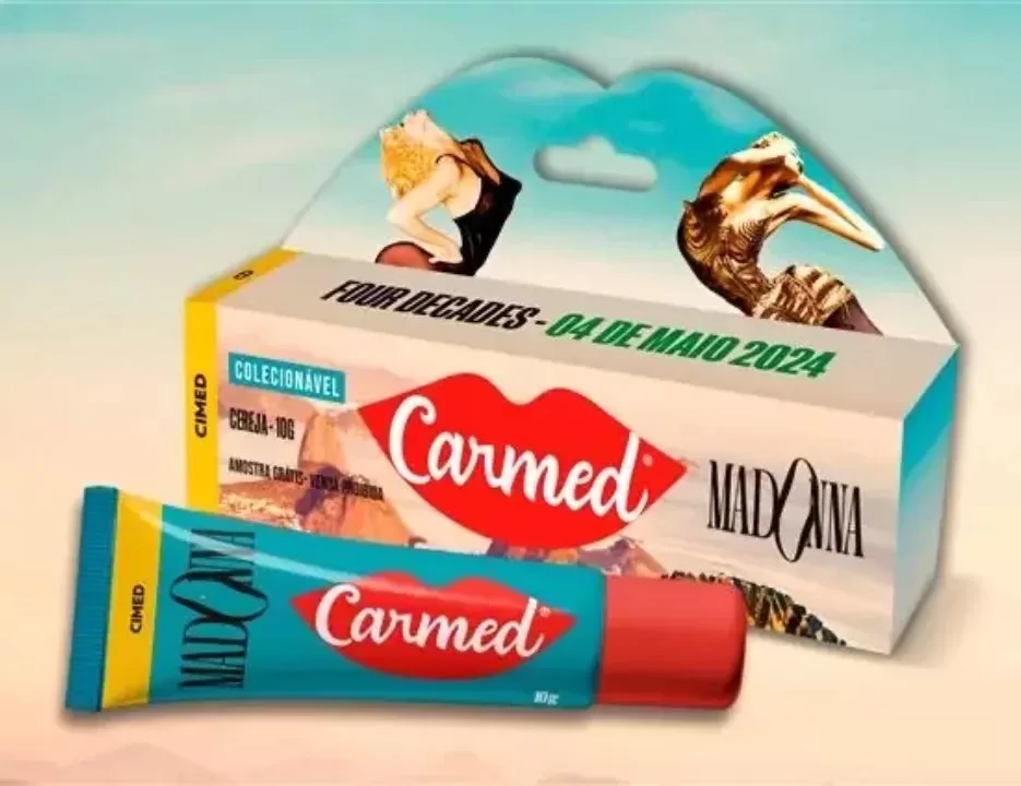 Os últimos meses têm sido movimentados no setor de collabs da Carmed. Após entregar ao mercado lançamentos produzidos em conjunto com empresas como Burger King e Mattel, a parceira da vez é a cantora Madonna, que fará um show gratuito em Copacabana no próximo sábado, 4.