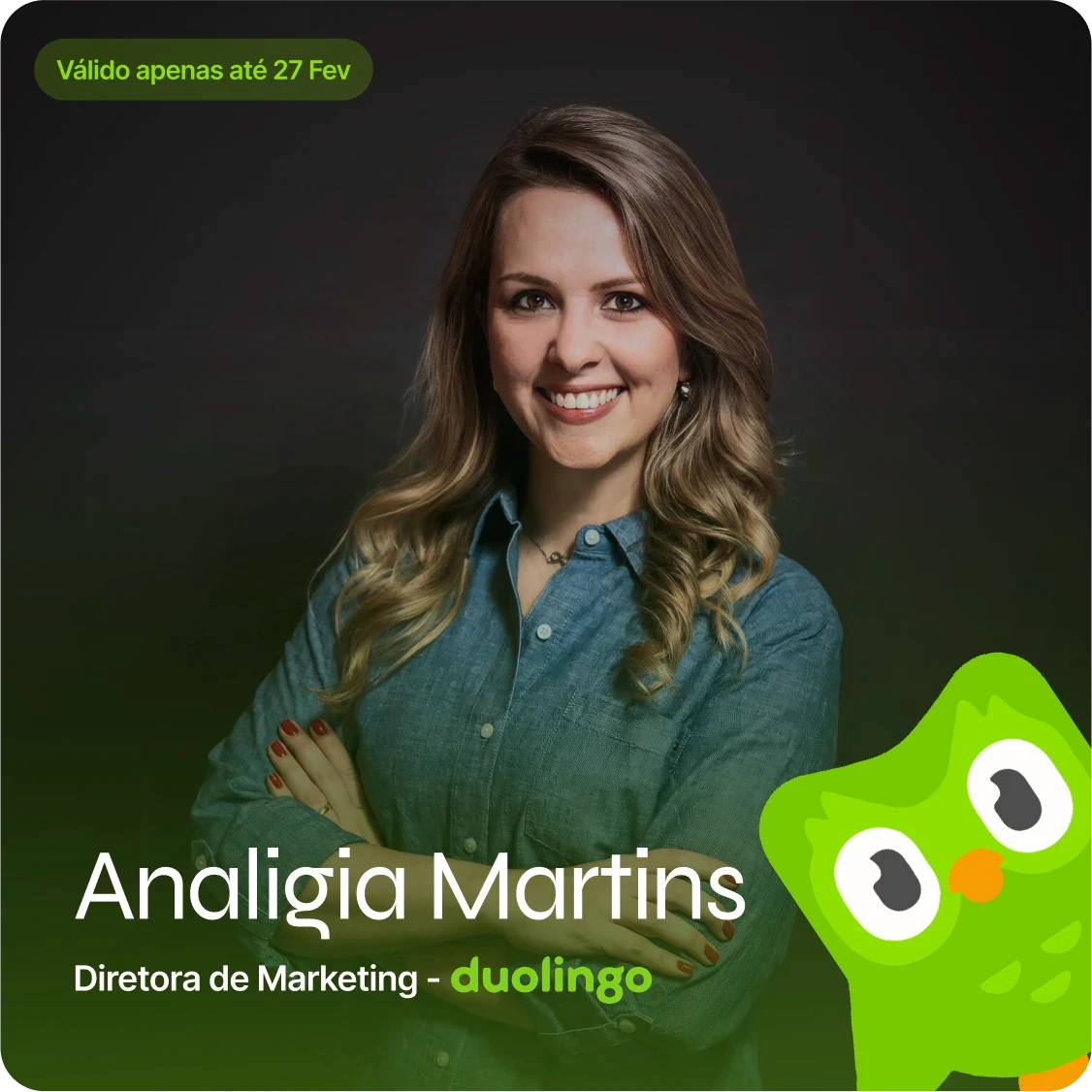 Os credenciados poderão participar de uma mentoria em grupo com Analigia Martins, Diretora de Marketing do Duolingo. A profissional abordará as estratégias de crescimento e branding que transformaram a empresa em um fenômeno cultural, combinando 25 anos de expertise em Marketing educacional com inovação digital.