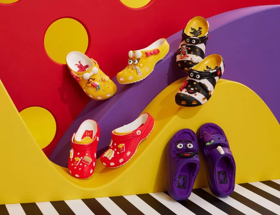 A coleção inaugura uma linha completa de calçados e Jibbitz e contempla desde os Classic Clogs, que recebem um toque do McDonald’s, até uma coleção de edição limitada inspirada em personagens icônicos do McDonald's, como Grimace, Birdie e Hamburglar.