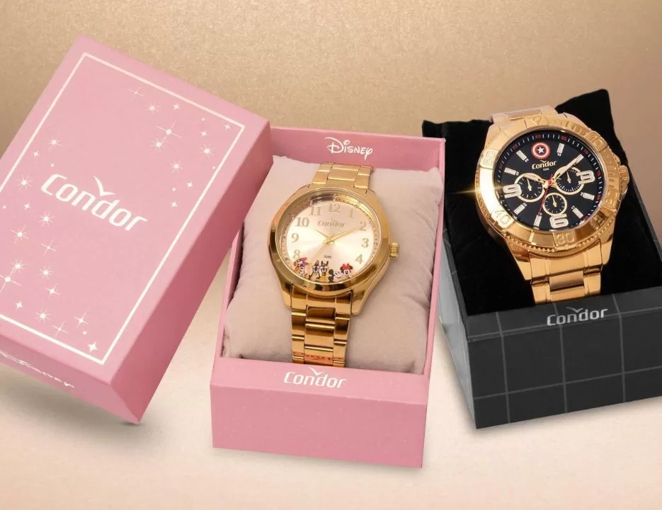 A Condor lançou sua nova linha de relógios em collab com a Disney. A marca traz o sentimento nostálgico dos adultos, com opções para toda a família, com relógios e semijoias. Os kits, em versões masculinas e femininas, trazem modelos de relógios em prata e dourado, com personagens da Marvel como Capitão América, Homem Aranha, Vingadores e versões femininas com Minnie e Mickey.