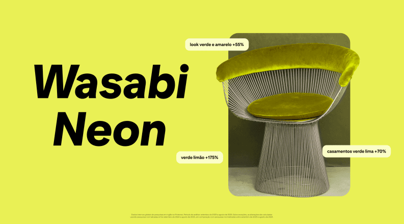 Elétrico e vibrante, o Wasabi Neon representa a busca por estímulo visual e energia.