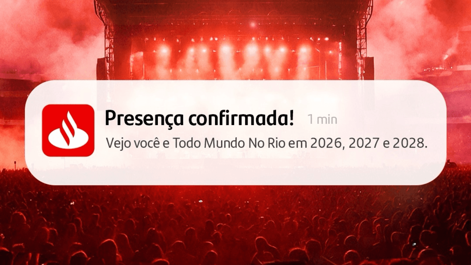 A estratégia do banco envolve a vinculação a um evento de grande escala e forte repercussão midiática, reforçando atributos ligados à cultura, entretenimento e acesso democrático a grandes experiências. Nas redes sociais, a marca já está premiando fãs com ingressos para a área VIP, mediante comentários que provem serem merecedores da cortesia.