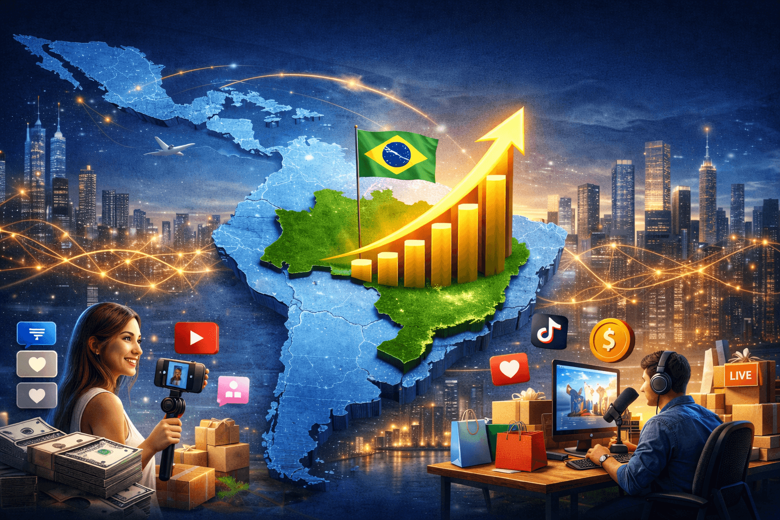 No contexto regional, o Brasil se posiciona como principal força da Creator Economy na América Latina, região que deve crescer de US$ 38,5 bilhões em 2025 para mais de US$ 112 bilhões em 2031.