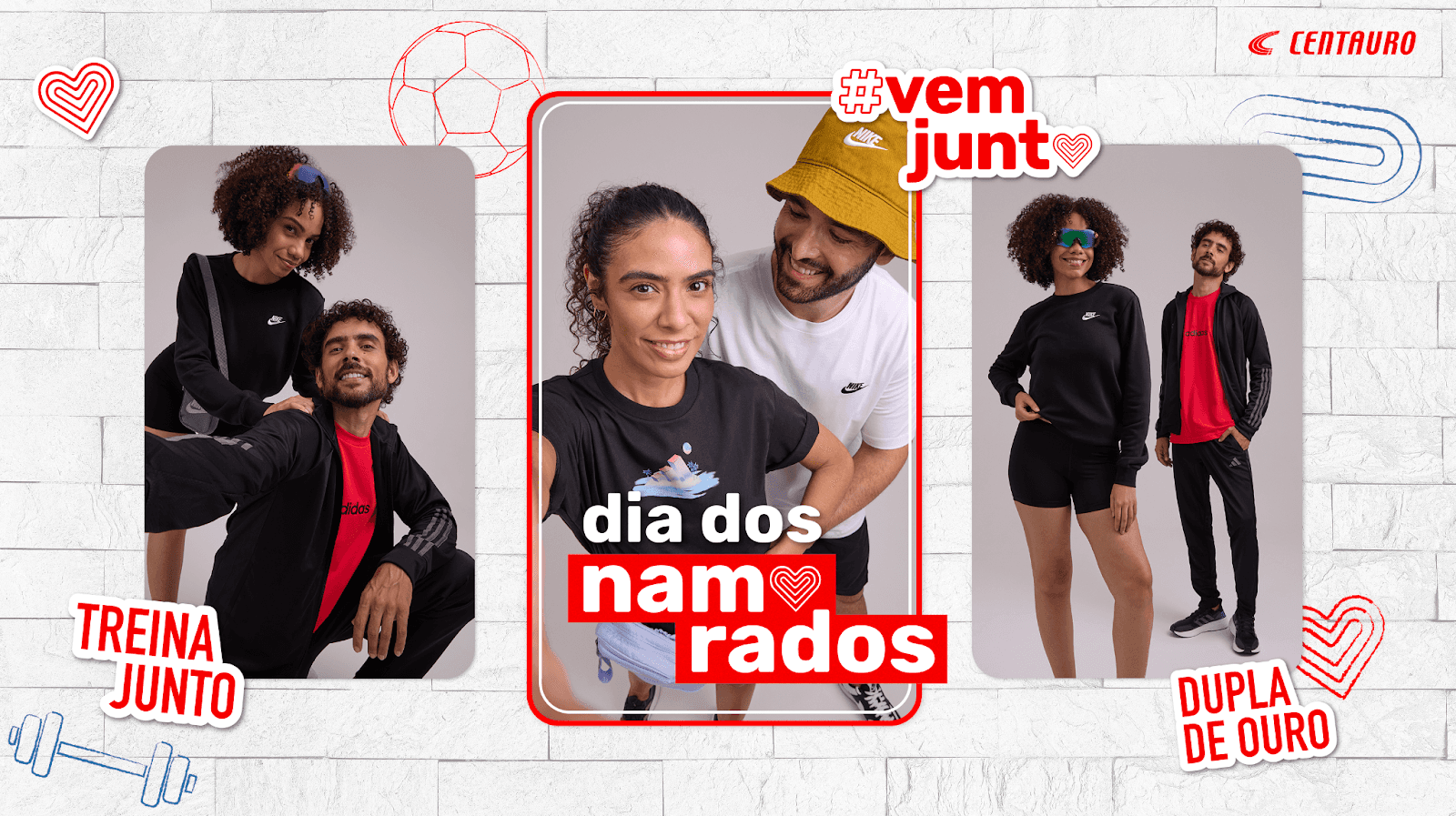 Com o conceito “Vem Junto”, a Centauro lança sua campanha de Dia dos Namorados com foco em casais que compartilham a paixão pelo esporte, desde os que já praticam juntos até aqueles que desejam inserir a atividade física na rotina. A ação apresenta uma seleção especial de produtos para presentear o parceiro e incentivar momentos a dois em movimento.