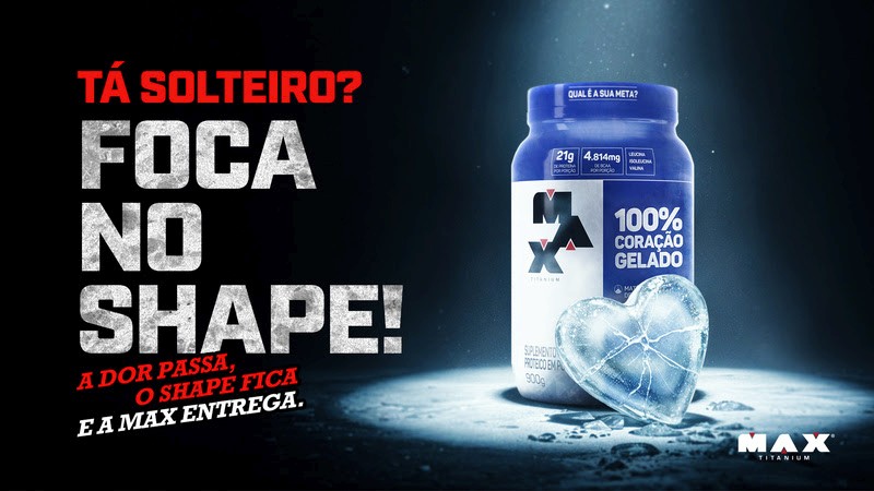 A Max Titanium decidiu seguir por um caminho sarcástico no Dia dos Namorados. Fugindo do óbvio, a marca do Grupo Supley lança uma campanha inédita focada justamente em quem vai passar a data solteiro, seja por opção ou por recentes reviravoltas no coração, e quer transformar esse momento em combustível para evoluir no shape.