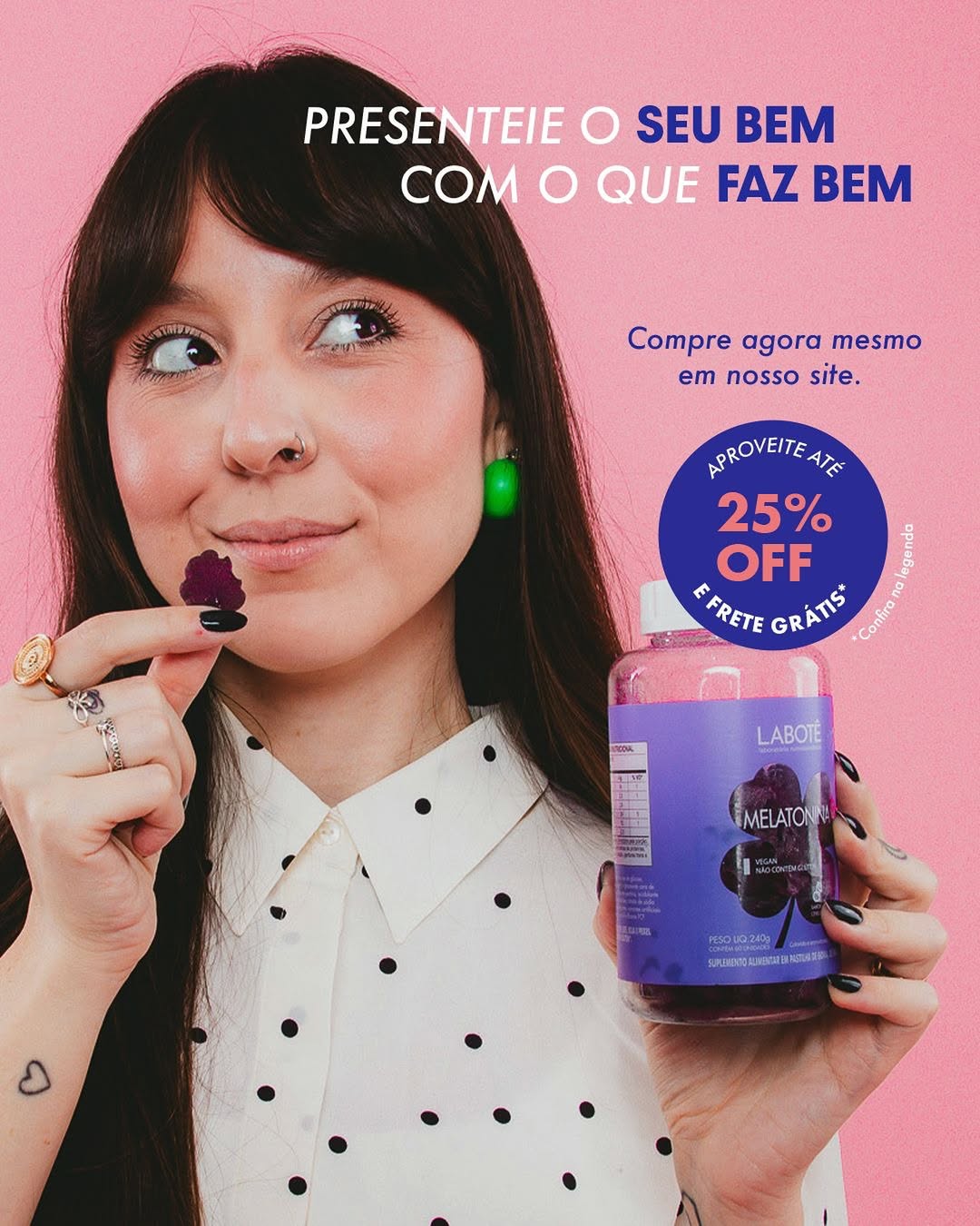 Com uma abordagem afetiva e próxima, a marca destaca dois de seus principais produtos: a Melatonina Labotê, que promove noites de sono mais tranquilas, e a Vitamina Hair, Skin & Nails, que contribui para a saúde dos cabelos, pele e unhas.