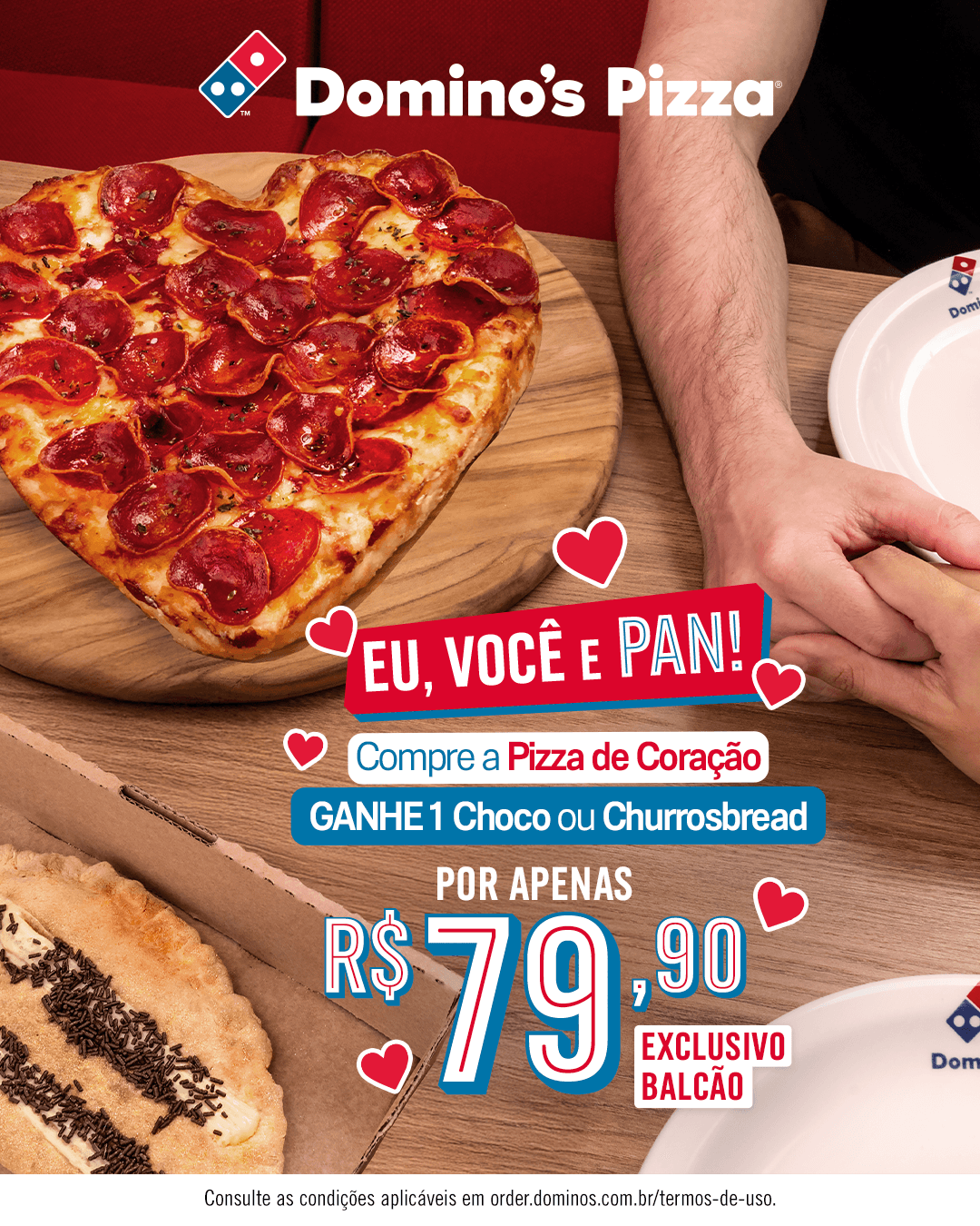 “Pensamos nessa ação para quem quer comemorar o Dia dos Namorados de um jeito gostoso e descomplicado. Uma pizza especial, cujo formato dispensa comentários, e que acompanha uma deliciosa sobremesa de brinde. E o mais bacana: é uma oportunidade de sair da rotina, ir até a loja e compartilhar esse momento com quem se ama”, explica Gabriel Ferrari, CMO da Domino’s Pizza Brasil.