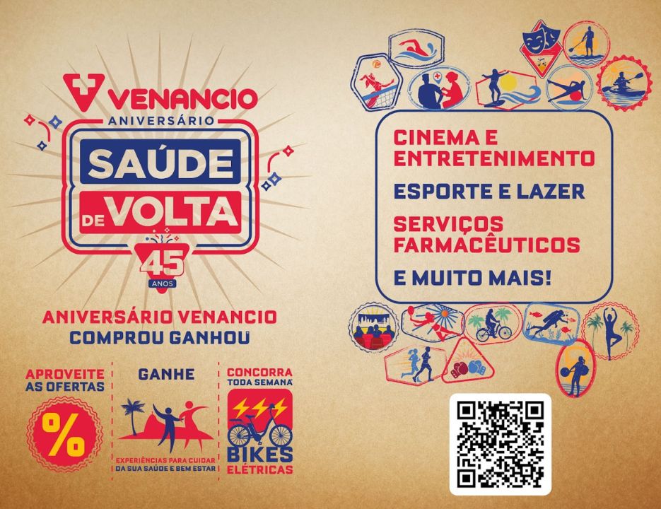 Celebrando 45 anos em 2024, a Drogaria Venancio decidiu presentear os clientes com experiências voltadas ao bem-estar físico. A cada R$80,00 em compras no mesmo cupom fiscal, os interessados poderão resgatar três experiências, sendo uma delas necessariamente um serviço farmacêutico.