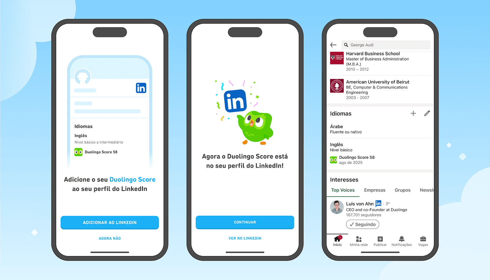 A integração com o LinkedIn permitirá que usuários vinculem sua pontuação diretamente à rede profissional, criando uma conexão entre habilidades linguísticas verificadas e oportunidades de carreira.