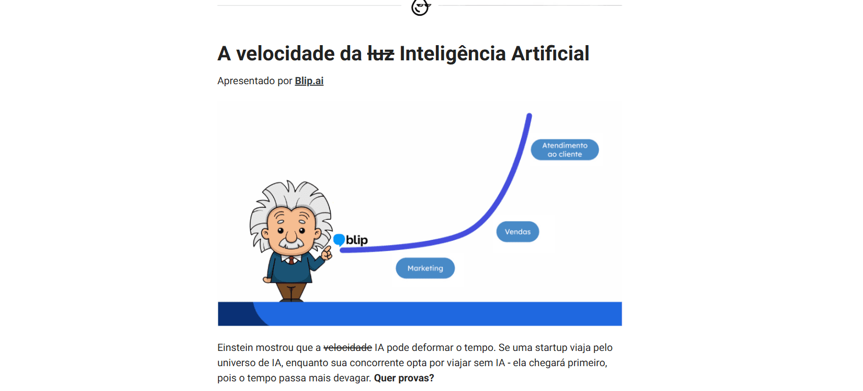 Parceira da Drops, a Blip tem investido no poder na newsletter como um valioso portal de acesso a novos públicos. Na avaliação de Nathália Oliveira, Marketing Manager na Blip, o canal é ideal para ultrapassar a bolha de audiência da marca em projetos de conteúdo de marca, permitindo o alcance de comunidades que ainda não haviam consumido os conteúdos da Blip diretamente.