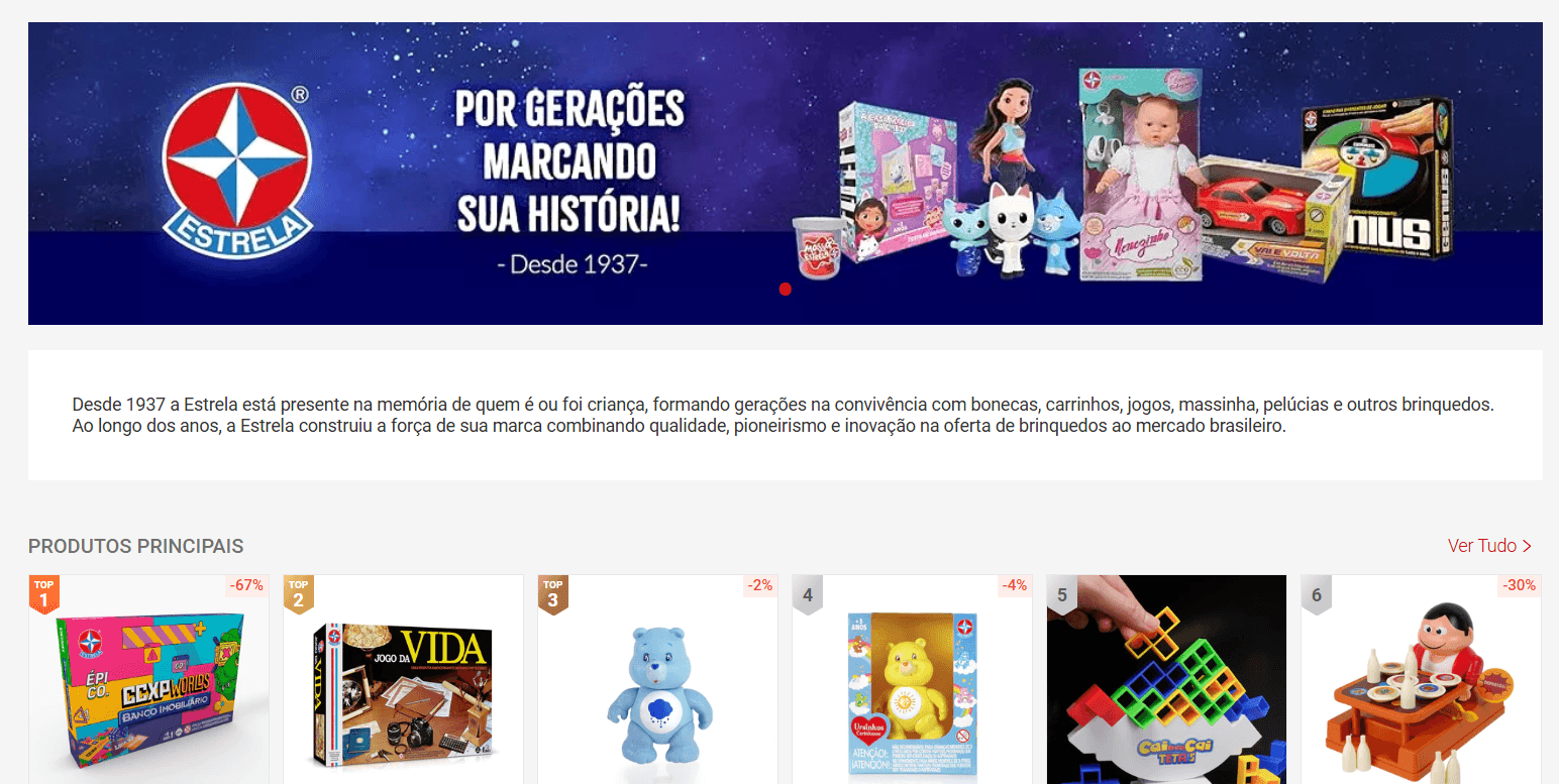 A fabricante de brinquedos Estrela faz parte do rol de empreendimentos com Lojas Oficiais na Shopee. A marca busca fortalecer a própria presença digital e aproveitar a relevância da plataforma no setor de brinquedos. No ano passado, a categoria registrou um aumento de 60% nas vendas no aplicativo Shopee.