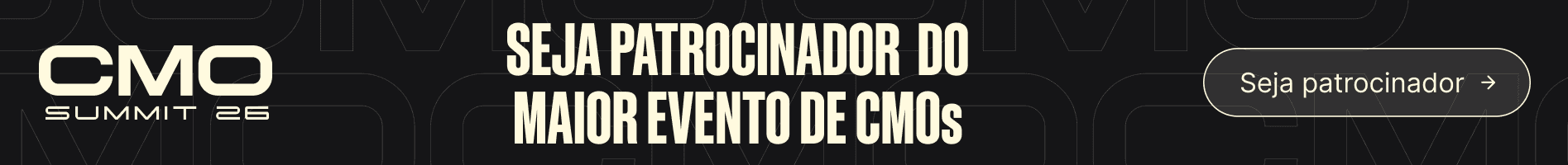 O CMO Summit acontece nos dias 25 e 26 de março, no Expo Center Norte, em São Paulo, reunindo executivos e especialistas que discutem os rumos do Marketing nas organizações brasileiras. Inscreva-se já!