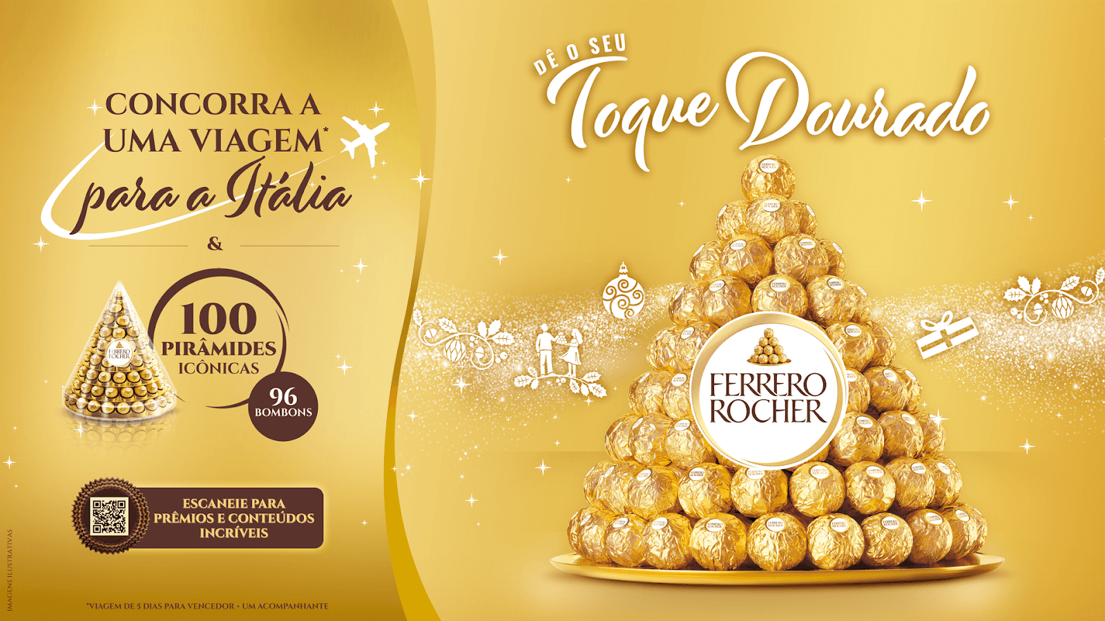 A lista de recompensas traz 100 pirâmides Ferrero Rocher e uma viagem para Itália. A campanha será divulgada por meio de um plano de mídia robusto, que inclui presença em TV nacional com um filme publicitário e conteúdos especiais nas redes sociais da marca e da atriz e influenciadora Camila Queiroz.