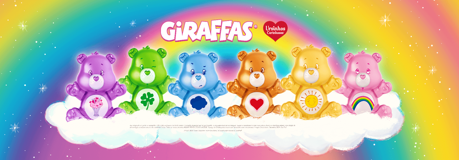 O Giraffas traz uma dose extra de carinho e nostalgia para seus clientes na sua mais nova coleção de brindes, protagonizada pelos icônicos Ursinhos Carinhosos, personagens que marcaram gerações nos anos de 1980 e 1990. A grande novidade são as encantadoras luminárias perfumadas, que capturam a doçura e a magia da Terra do Carinho.