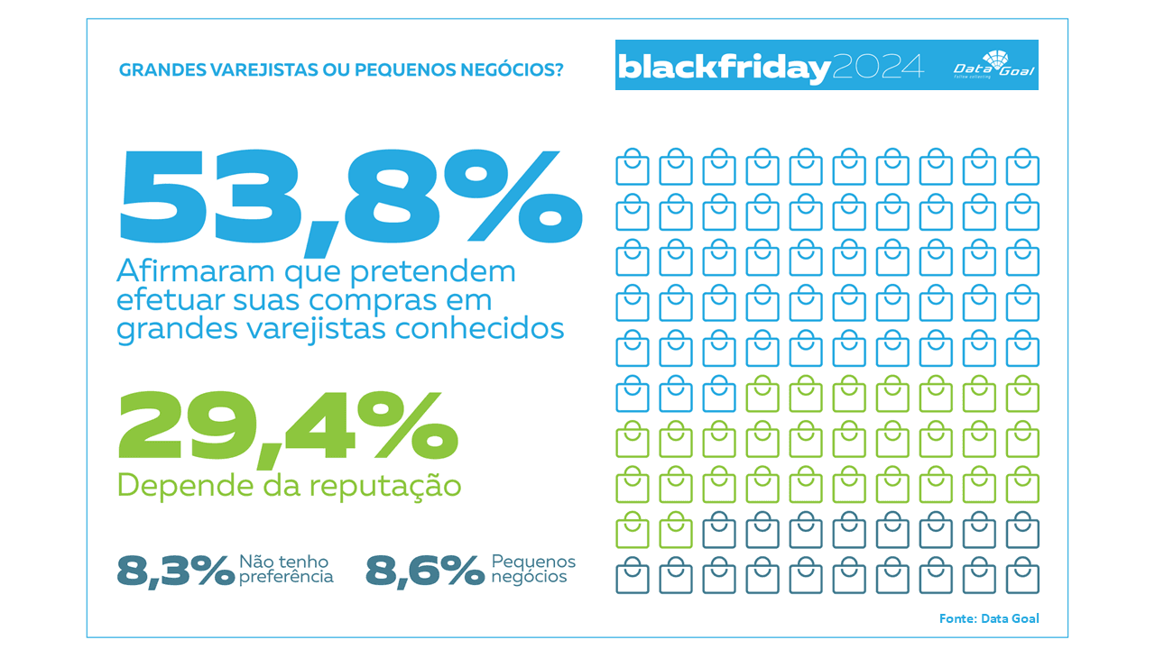 As grandes redes de varejo deverão se confirmar como as principais opções de busca por produtos durante a Black Friday. Cerca de 54% dos consumidores entrevistados durante um estudo conduzido pela Data Goal destacaram a preferência por vendedores consolidados na hora de aproveitar os descontos da data.